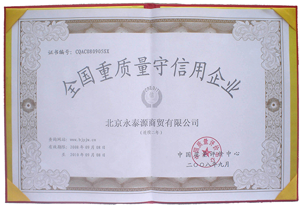 上一篇:全國重質(zhì)量守信用企業(yè)(銅牌)
